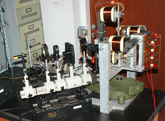 Setup using Magneto-Optic Kerr Effect in a diffracted regime (DMOKE) for analysis of patterned ferromagnetic nanostructures (3 configurations: polar, longitudinal, perpendicular); in collaboration with M. Procek.